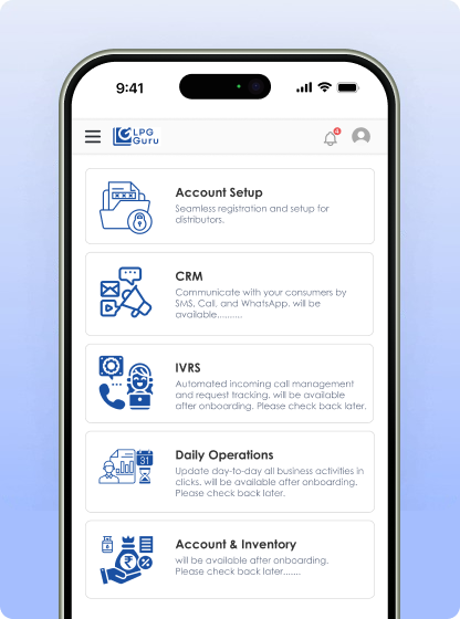 Run your LPG distribution business efficiently with LPG Guru, a comprehensive digital solution that streamlines your operations, from CRM and compliance management to billing, delivery tracking, and accounting. Automate daily tasks, reduce manual errors, and ensure full regulatory compliance, all in one platform.